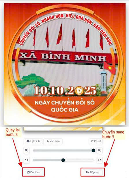 Bước 4. Sau khi đã căn chỉnh xong, chọn “Tiếp tục” để chuyển sang bước 5, hoặc chọn “Đổi hình” để chọn lại hình và quay lại bước 3.